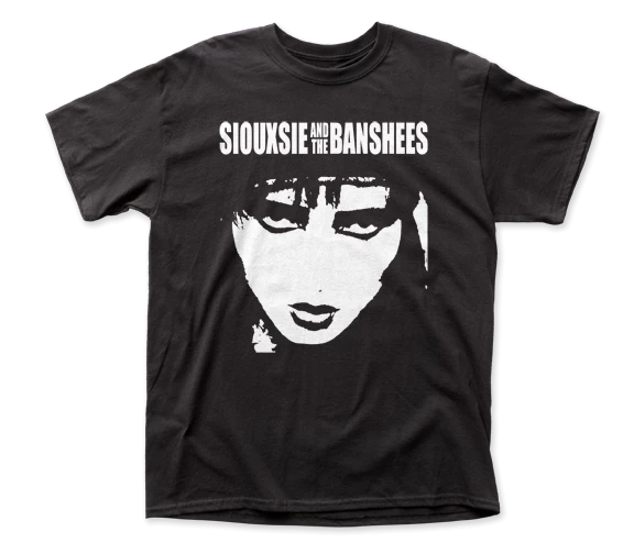 Simple and beautiful image of Siouxsie Sioux’s face in full Goth glory on men’s fitted black 100% cotton t-shirt