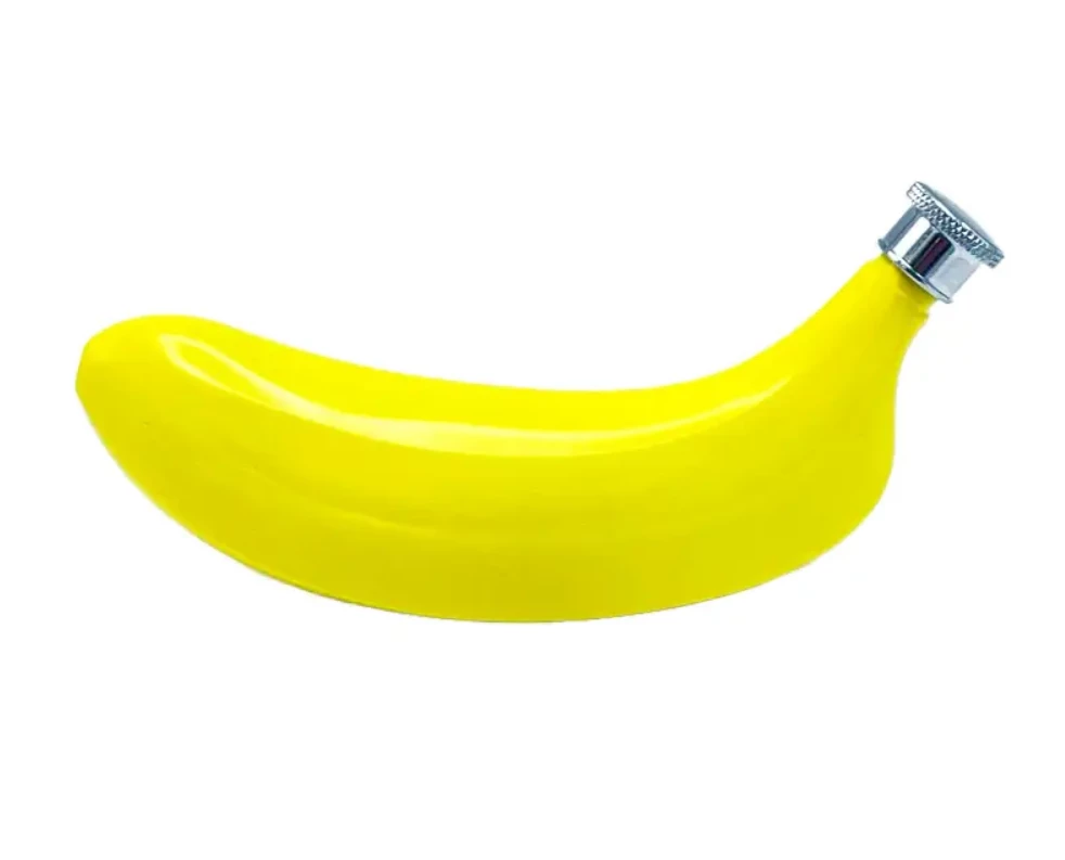 Stainless steel yellow banana-shaped flask, holds 4.5 ounces –one of these in your pocket and they’ll be happy to see YOU!