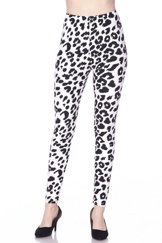 High-waisted super stretchy brushed fiber (soft like the skin of a peach!) leggings in black & white leopard print