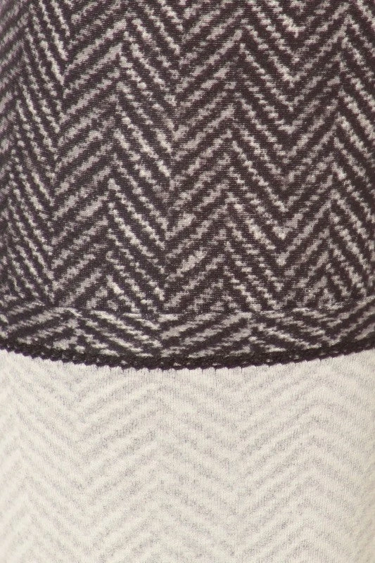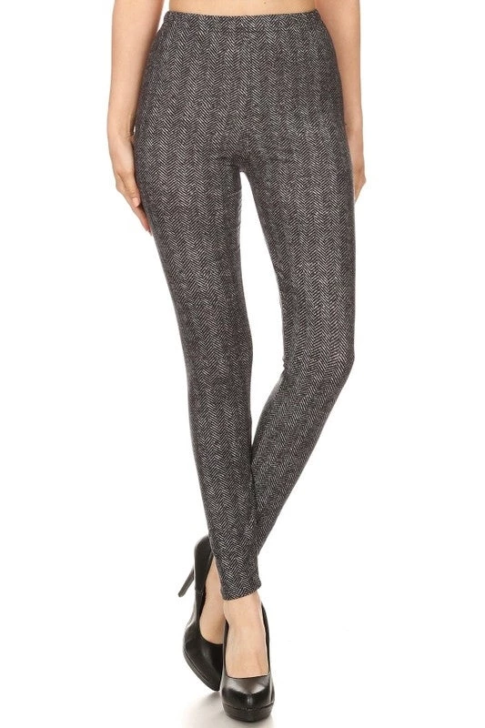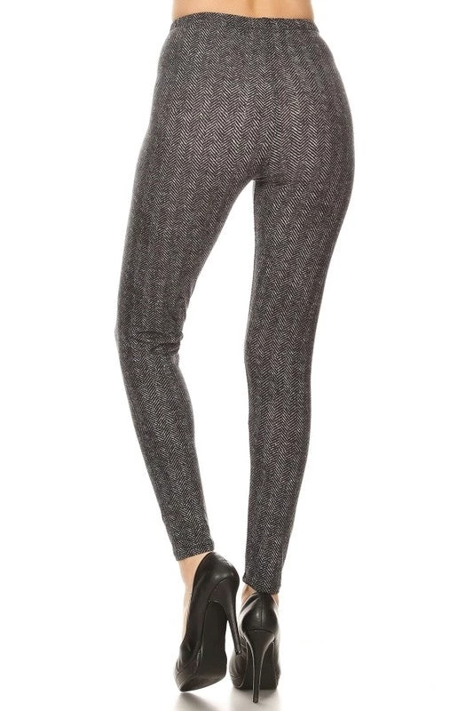 High-waisted super stretchy brushed fiber (soft like the skin of a peach!) leggings in a classic black & grey herringbone print