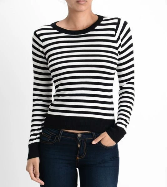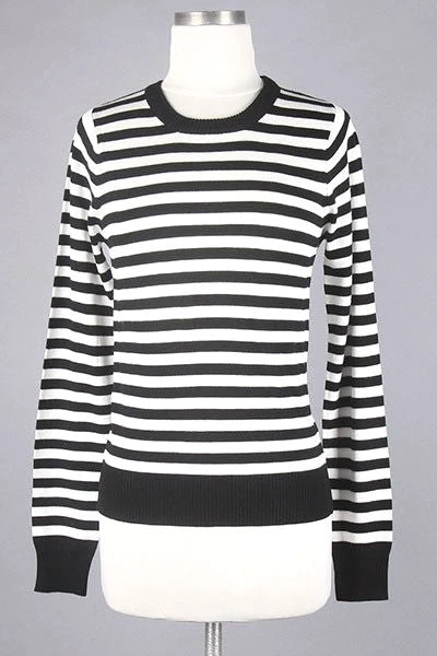 Super soft fitted crew neck pullover sweater in classic black & white stripes