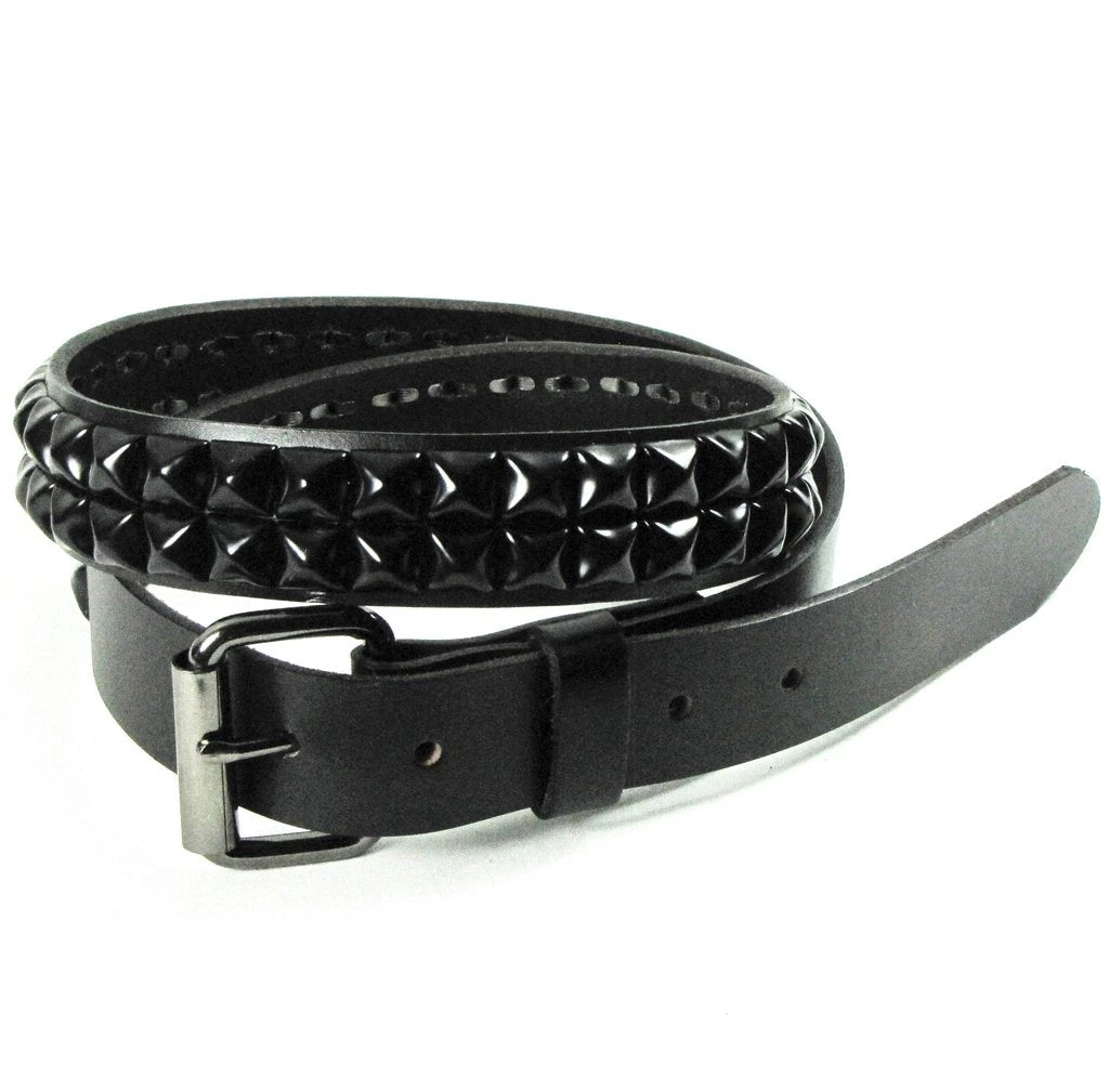 Classic 1 1/2″ genuine leather (not bonded!) belt with 2 rows of 1/2″ black metal pyramid studs