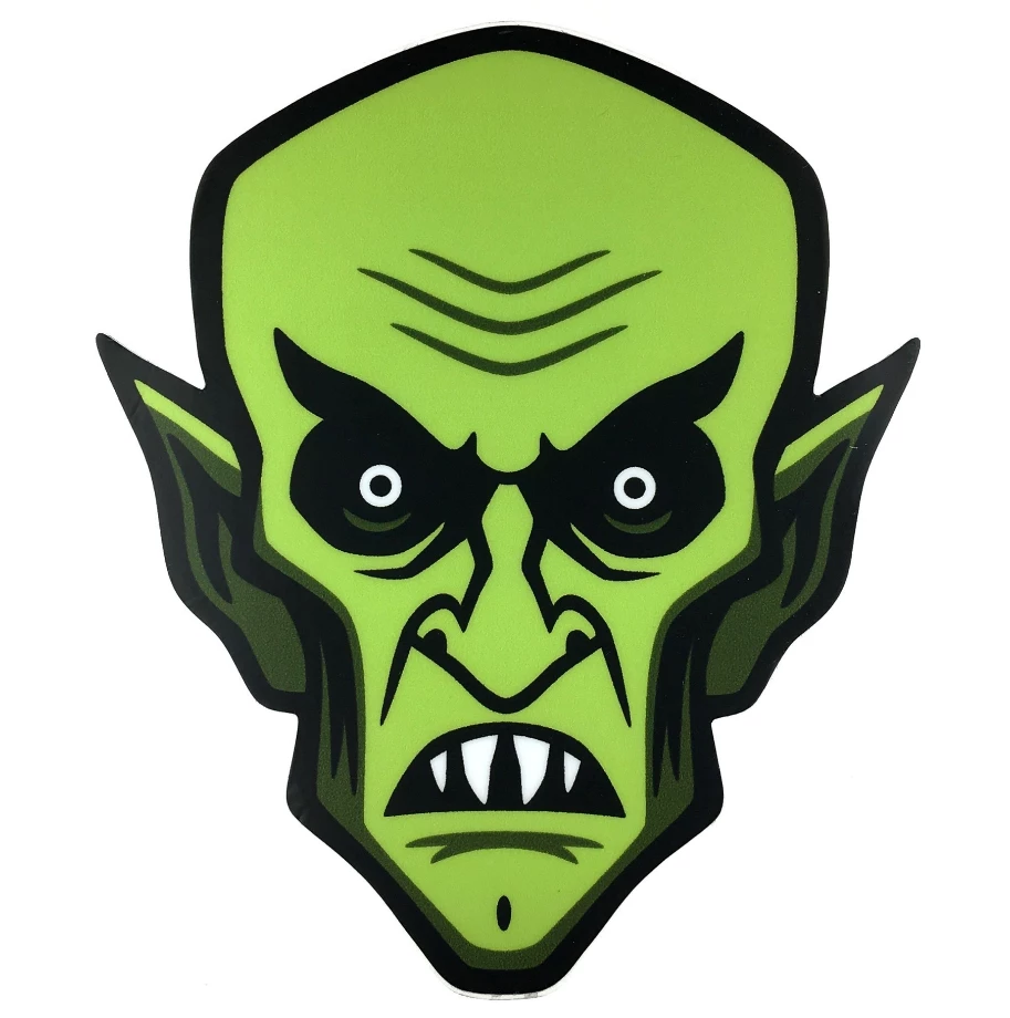 Monsterologist’s creepy green rendition of the face of Max Schreck as vampire “Count Orlok” from the 1922 German Expressionist silent film, Nosfertu: A Symphony of Horror on a die-cut vinyl sticker