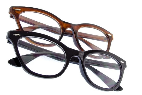 You’ll look so “smart” (in the fashion sense!) when you wear these cute and sassy cat eye shaped Wayfarer style black or brown frame clear lens glasses