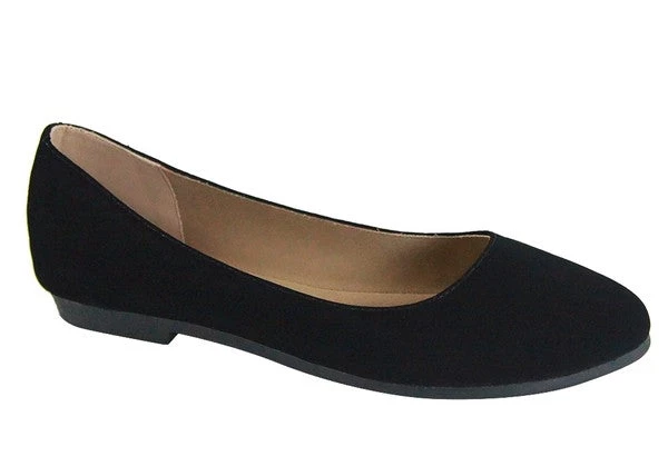 This classic round toe flat in black faux nubuck (like velveteen) will look great with retro or modern outfits!