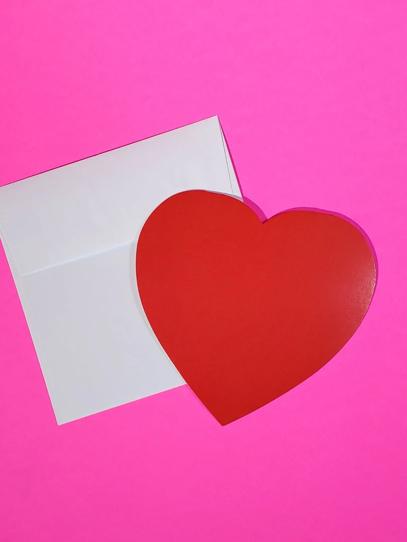 Classic bright red heart shaped die-cut note card –a bold design that’s perfect for expressing affection on Valentine’s Day or any day!