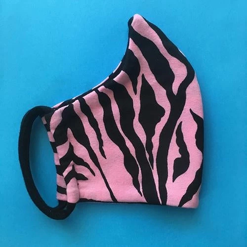 “Eyes without a face” Idol Masque from Rock Roll Repeat. This shaped to stay put layered face mask in black & pink zebra print knit features black 100% cotton inner layer with filter pocket and comfortable black cotton knit ear loops. A good citizen accessory for keeping your breath to yourself while we’re stuck in this Corona-verse :/