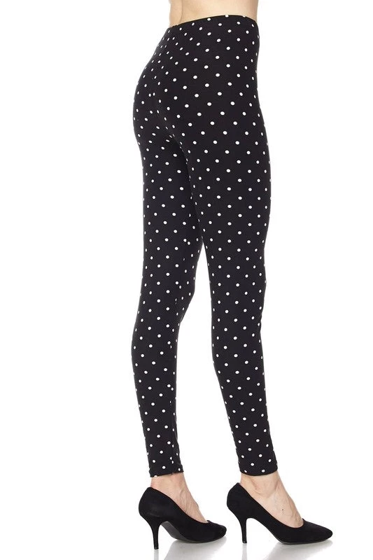 Super soft and stretchy high-waist leggings in a classic back & white polka dot print
