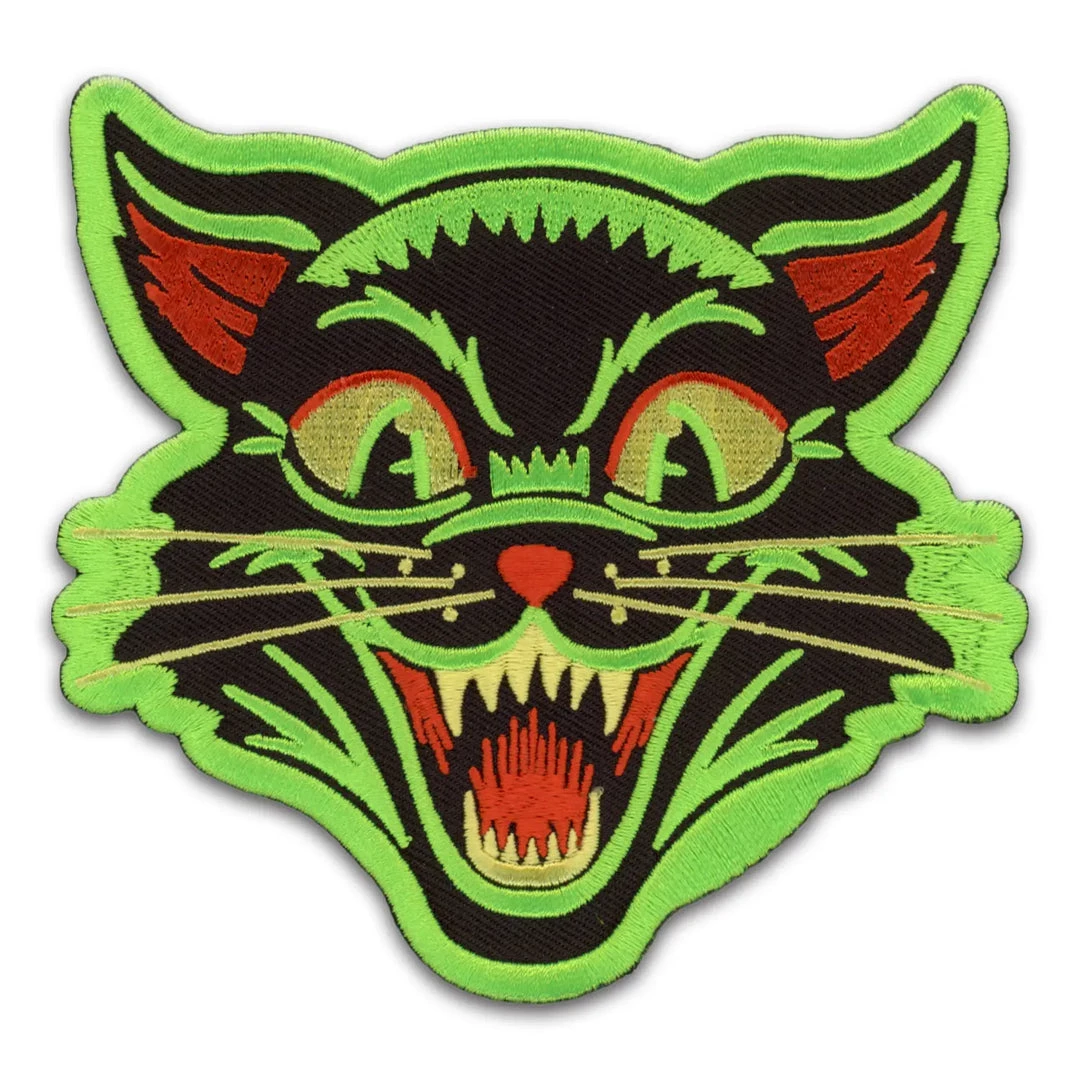 Vintage Halloween inspired “Frisky Kitty” embroidered patch, made by Retro-a-go-go! Studios