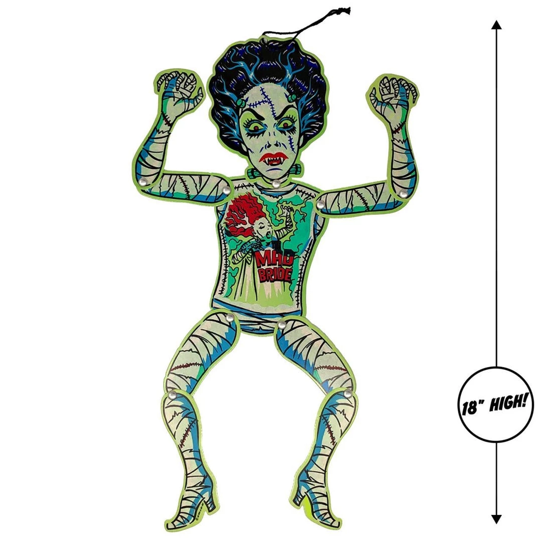 Ghoulsville retro Halloween “Mad Bride” 7″ tall ready-to-hang Vac-tastic plastic decor mask and 18″ tall jointed cardstock figure, packaged together in a cool display worthy box!