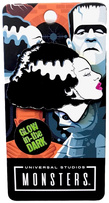 Glow-in-the-dark black, white & pink enamel pin depicting a profile view of