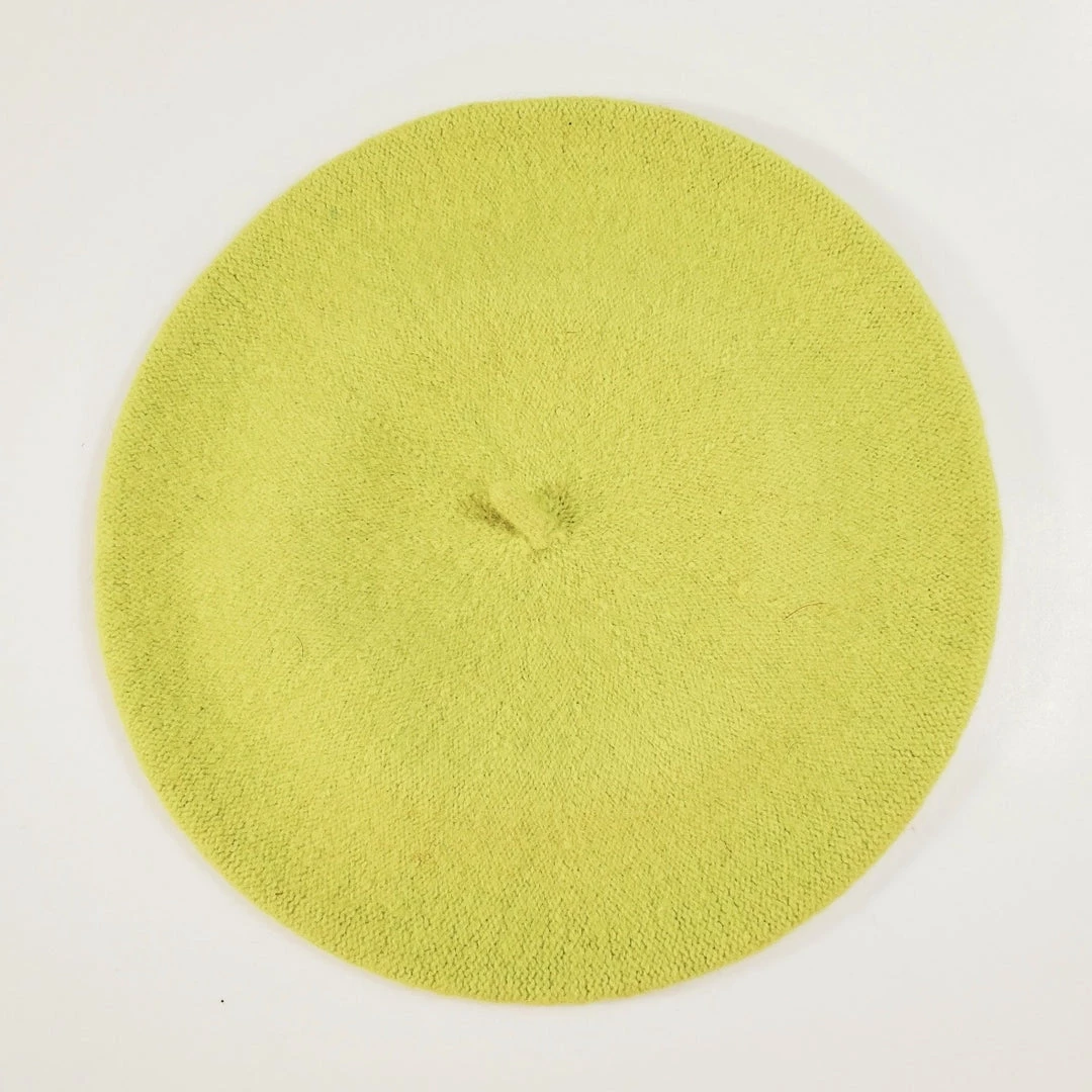 Classic, sophisticated and arty, this versatile and striking chartreuse green “French” beret is the perfect way to top off vintage or modern outfits!