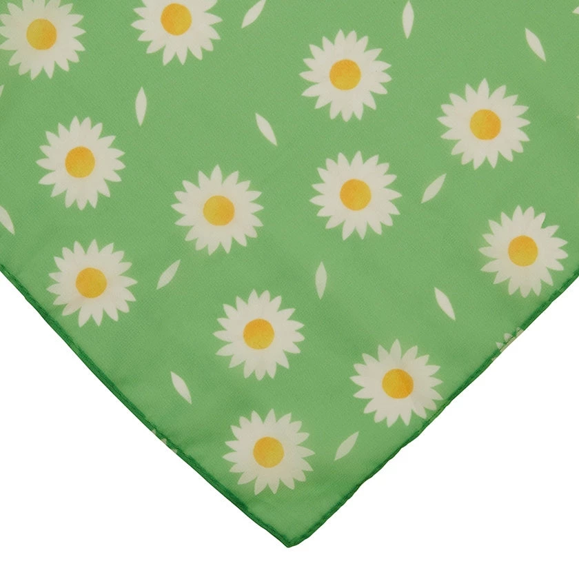 Vintage inspired semi-sheer “She Loves Me” allover white daisy print light green scarf, made by Erstwilder