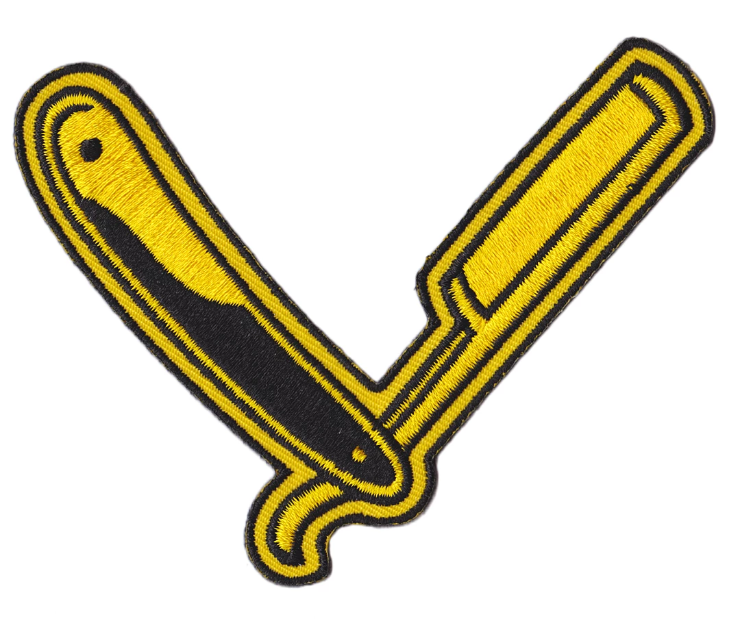 Show your love for a classic close shave with this golden yellow and black straight razor embroidered patch from Kustom Kreeps by Sourpuss Clothing