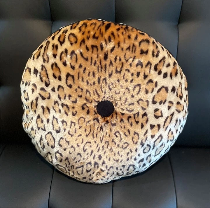 Soft & cozy glamour to decorate your digs! Purr-fectly deluxe leopard print velvet round pillow with black velvet piping and button center, made by Sourpuss Clothing