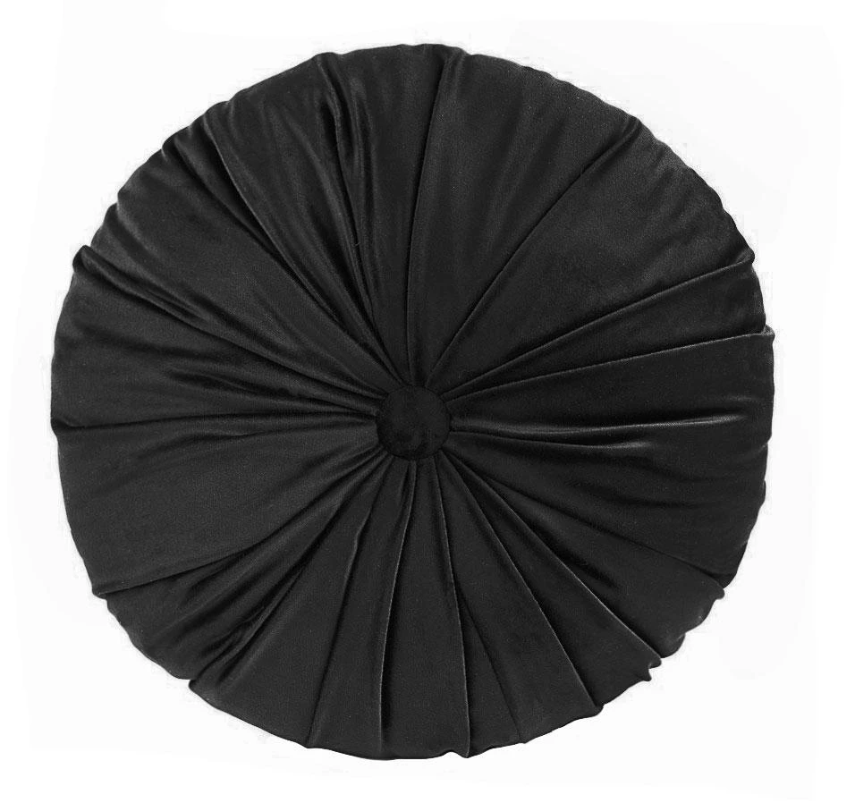 Soft & cozy glamour to decorate your digs! Inky black velvet round tufted pillow, made by Sourpuss Clothing