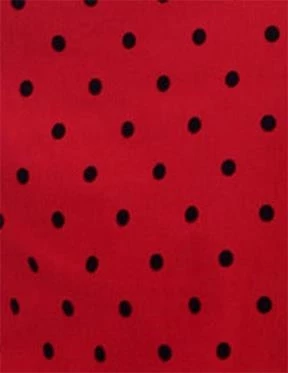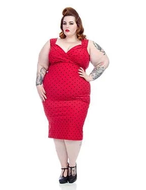 The va-va-voom factor is high on this SUPER stretchy red & polka dot wiggle dress that hugs your curves just right!