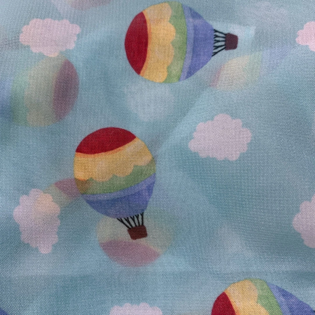 Vintage inspired semi-sheer “Up in the Clouds” hot air balloons and blue skies print scarf, made by Erstwilder