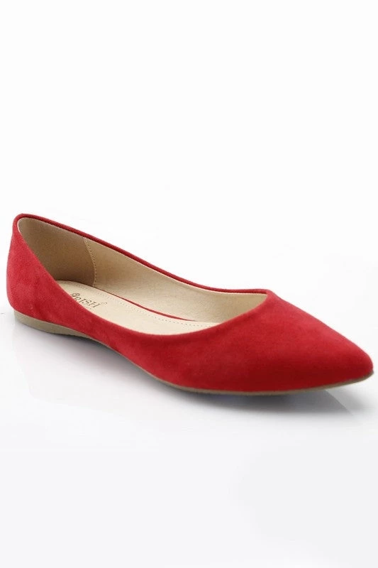 This velvety soft faux suede pointed toe flat in rich cherry red will look great with retro or modern outfits!